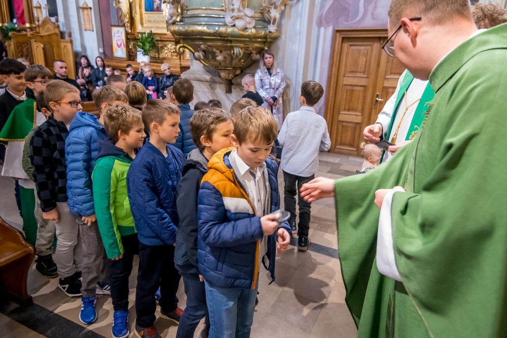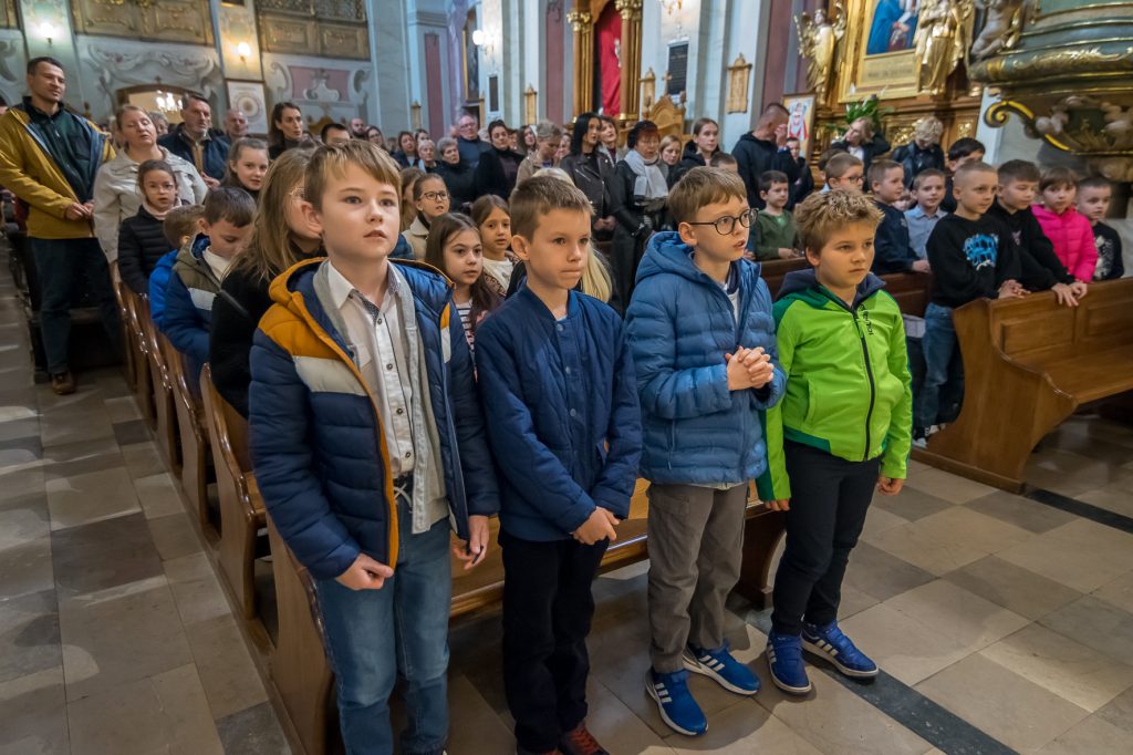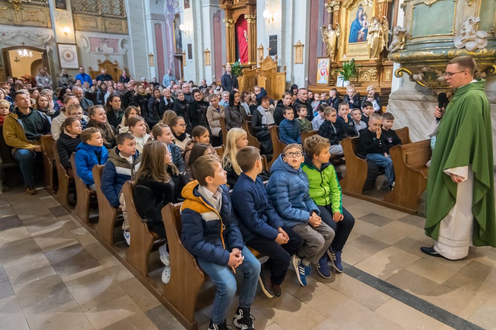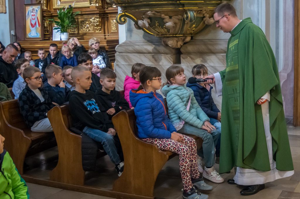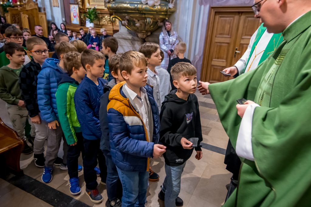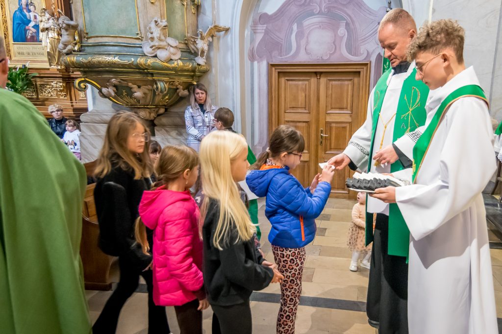 W ramach przygotowania do Pierwszej Komunii Świętej dzieci z klasy trzeciej Szkoły Podstawowej, w niedzielę 12 października, otrzymały poświęcone różańce. W tym ważnym dla nich wydarzeniu uczestniczyli ich rodzice, rodzeństwo oraz dziadkowie. Modlitwa różańcowa pomoże im wzrastać w miłości do Boga i ludzi. Uroczystość ta była ważnym momentem dla dzieci i ich rodzin, symbolizującym kolejny krok w duchowej drodze.