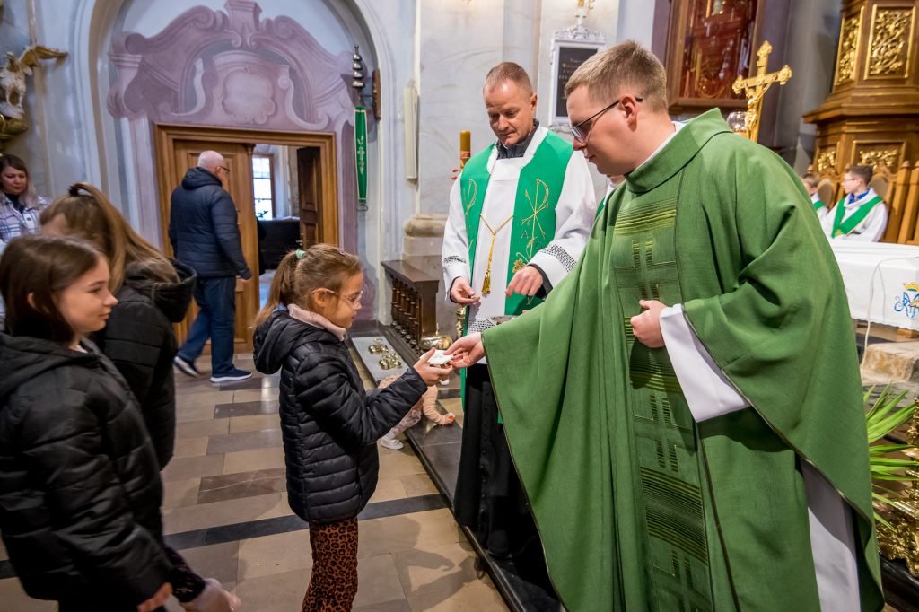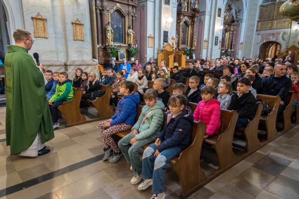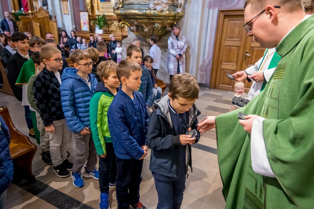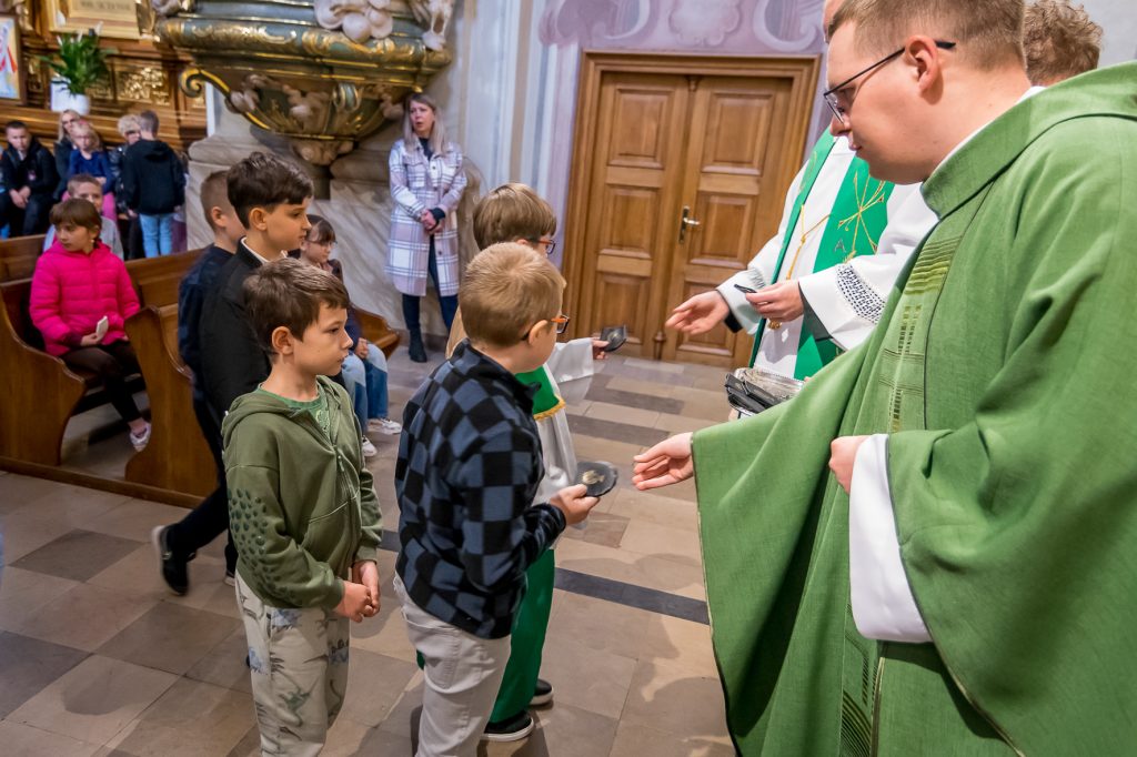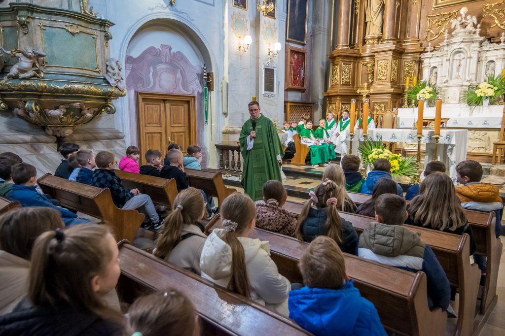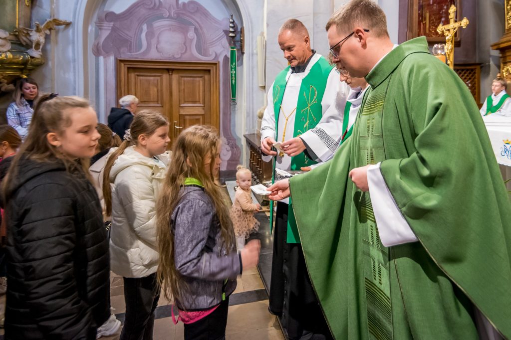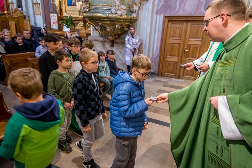 W ramach przygotowania do Pierwszej Komunii Świętej dzieci z klasy trzeciej Szkoły Podstawowej, w niedzielę 12 października, otrzymały poświęcone różańce. W tym ważnym dla nich wydarzeniu uczestniczyli ich rodzice, rodzeństwo oraz dziadkowie. Modlitwa różańcowa pomoże im wzrastać w miłości do Boga i ludzi. Uroczystość ta była ważnym momentem dla dzieci i ich rodzin, symbolizującym kolejny krok w duchowej drodze.