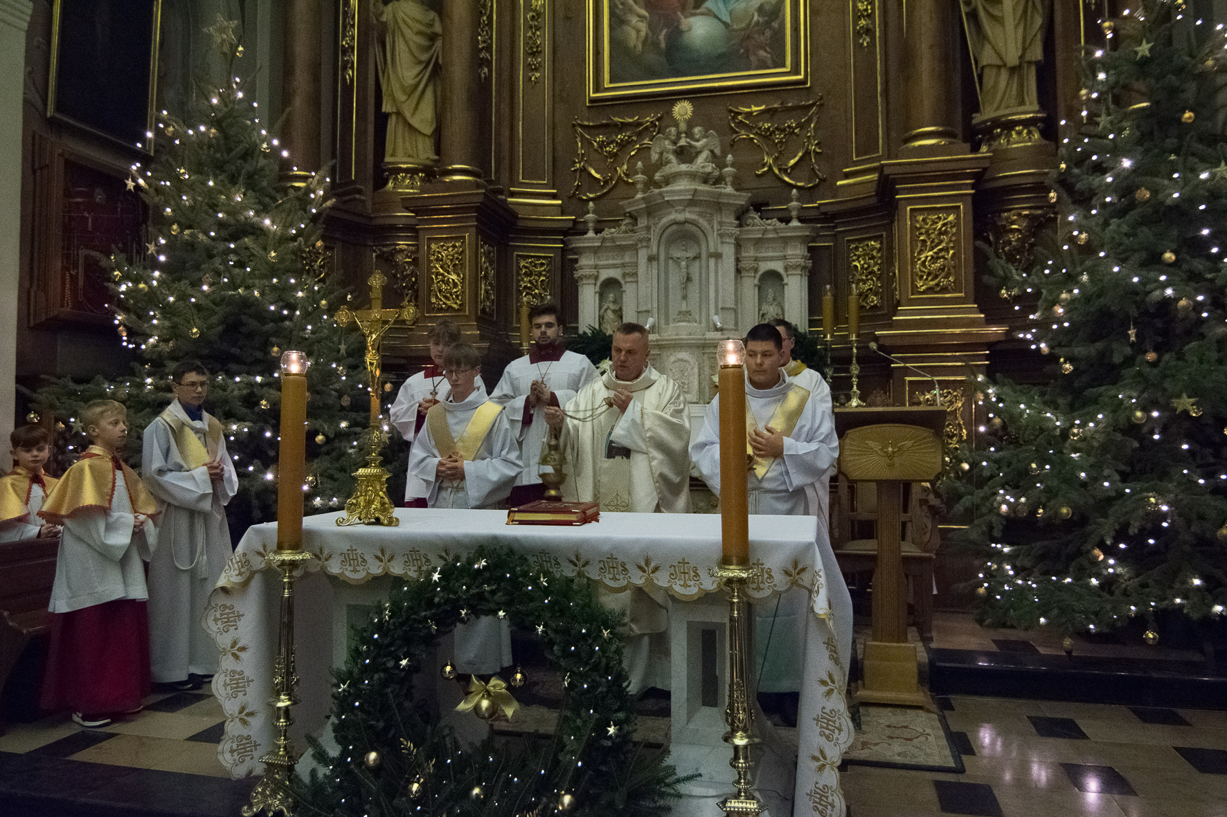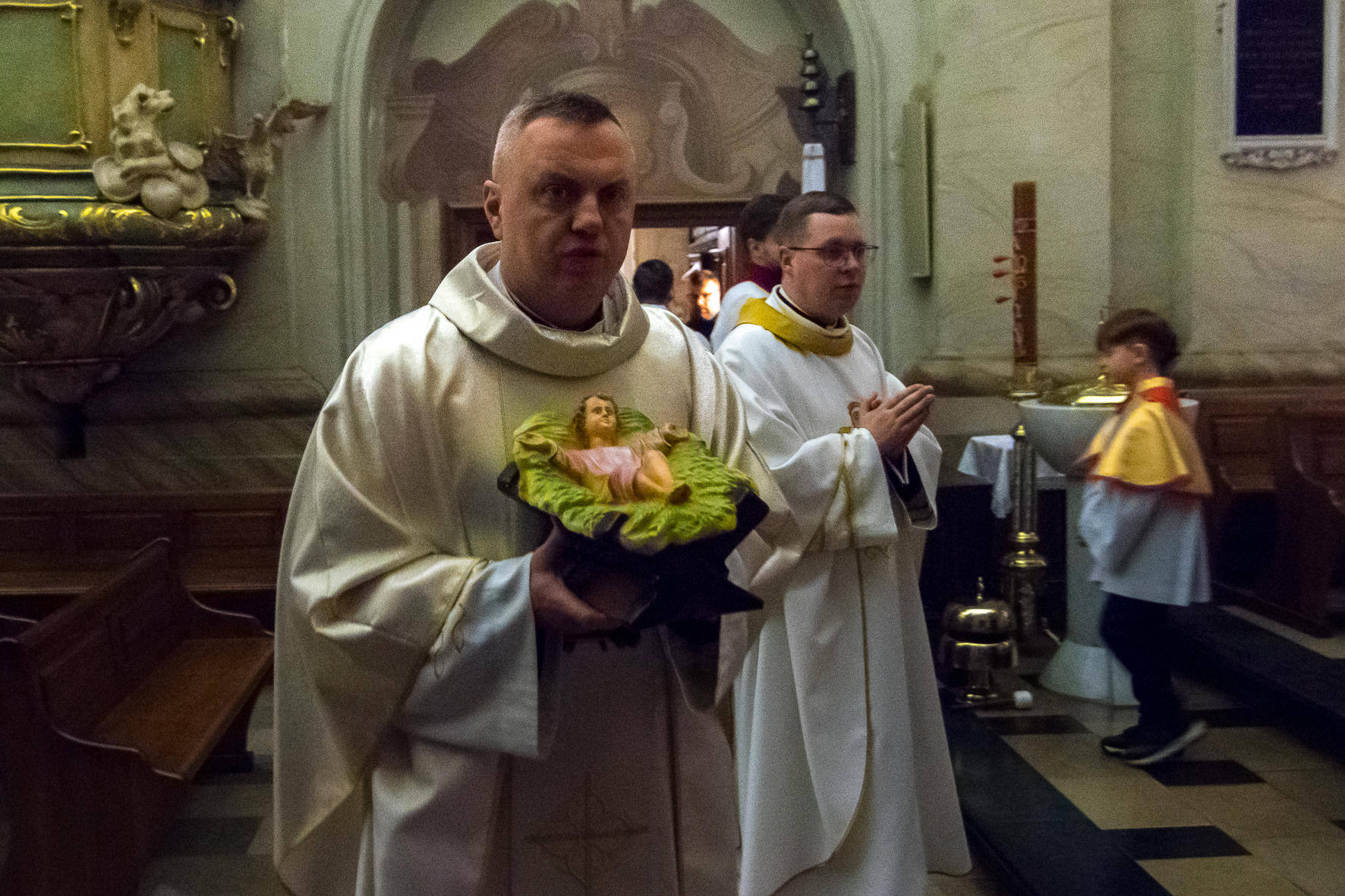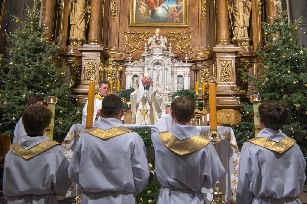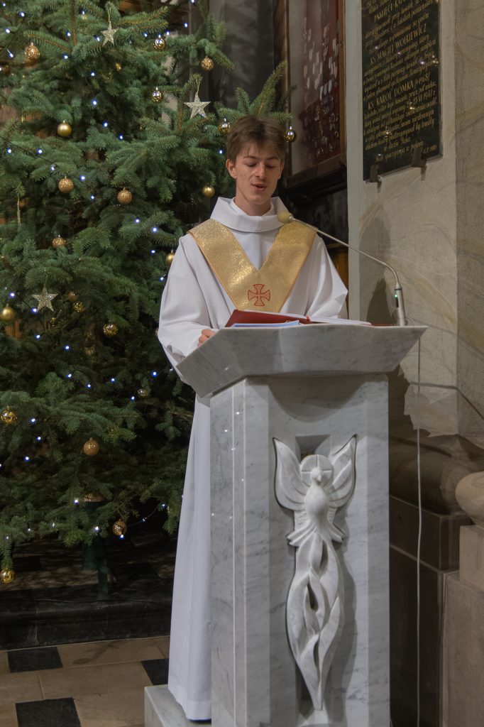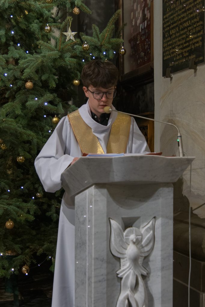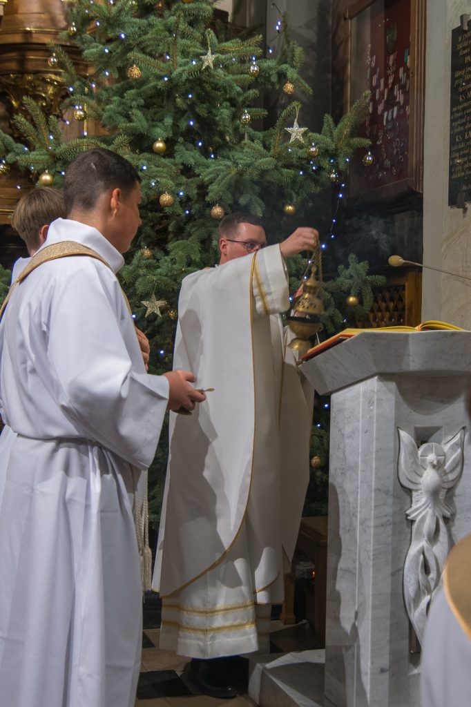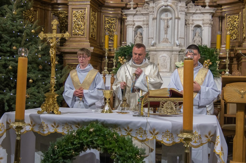 Liturgię Mszy Świętej poprzedziło uroczyste wniesienie figury Dzieciątka Jezus do szopki betlejemskiej. Na zakończenie Eucharystii ksiądz Proboszcz złożył wszystkim bożonarodzeniowe życzenia.