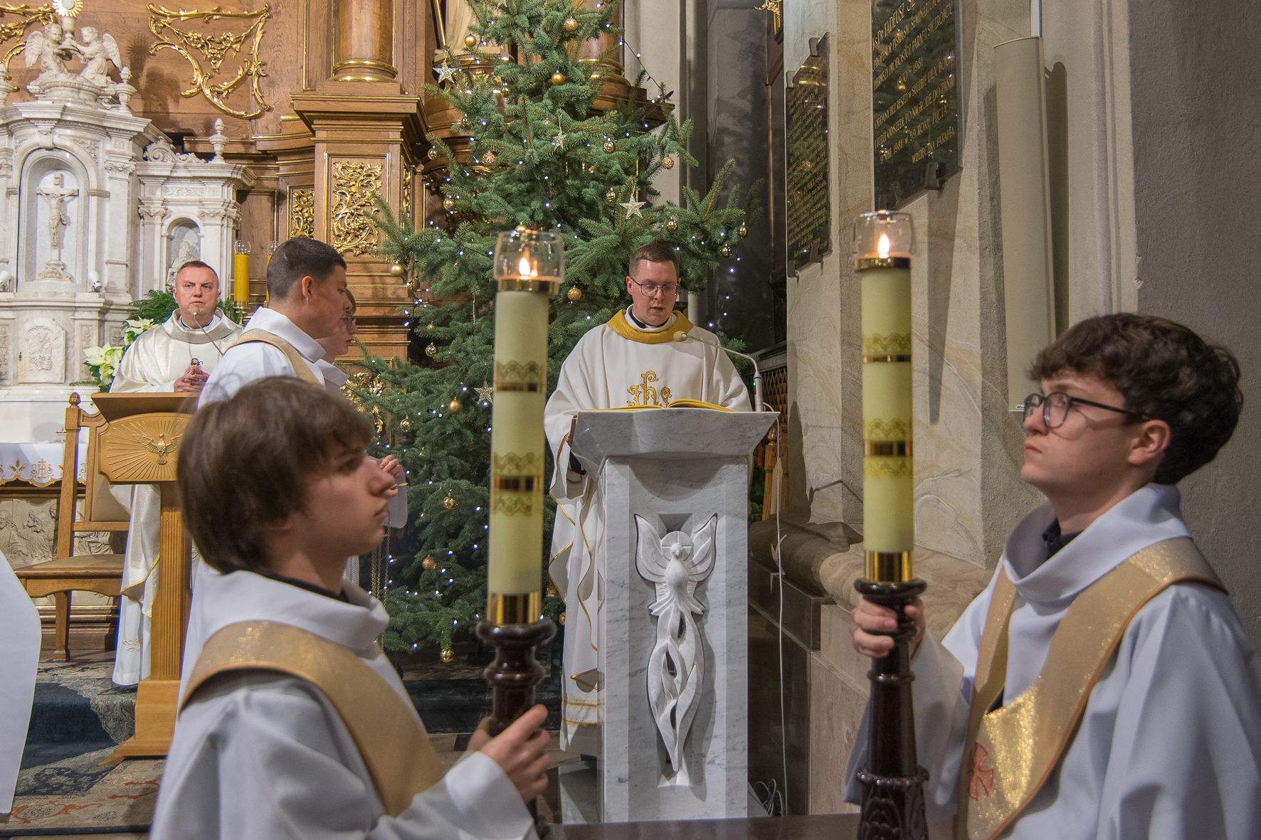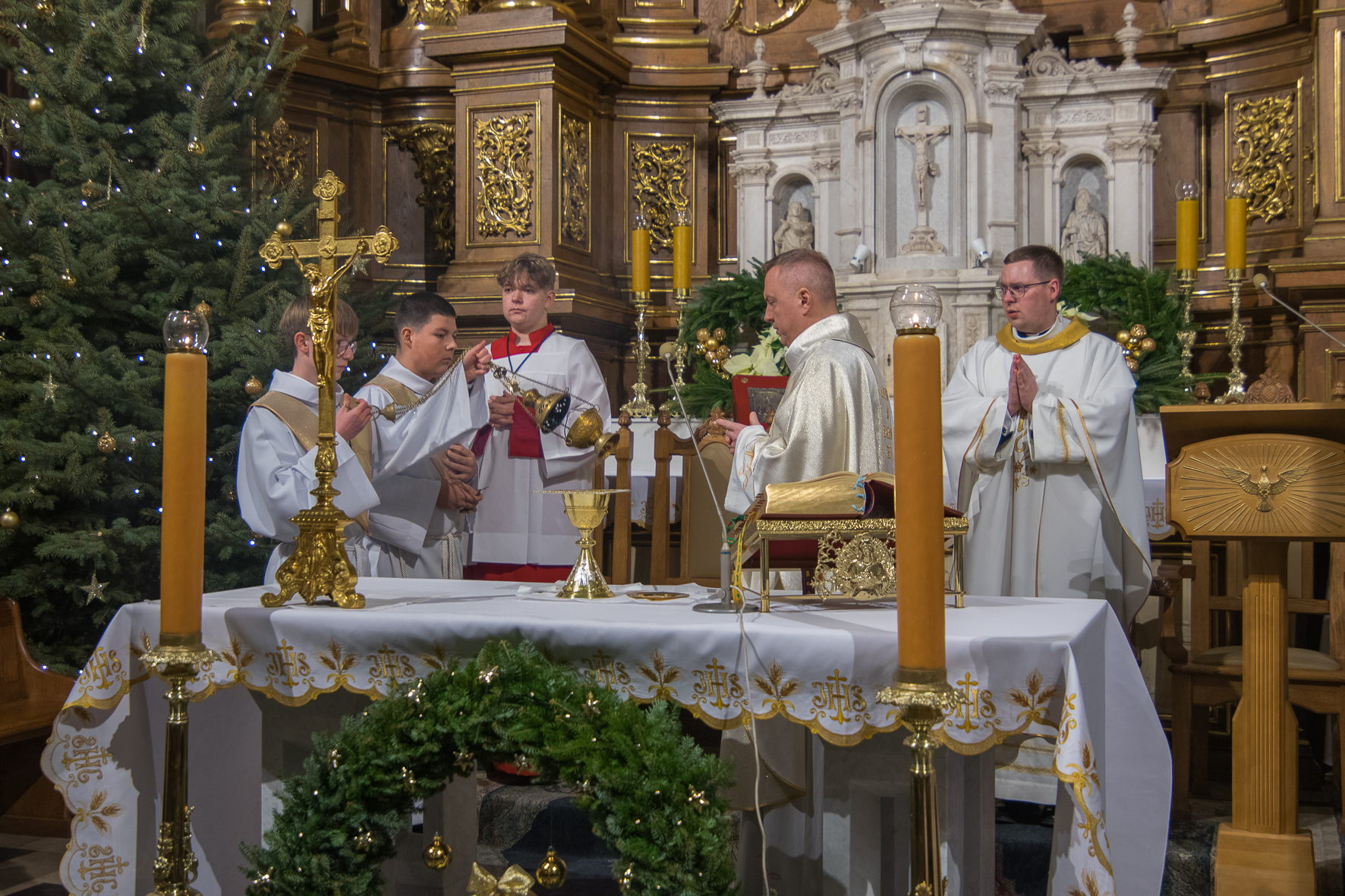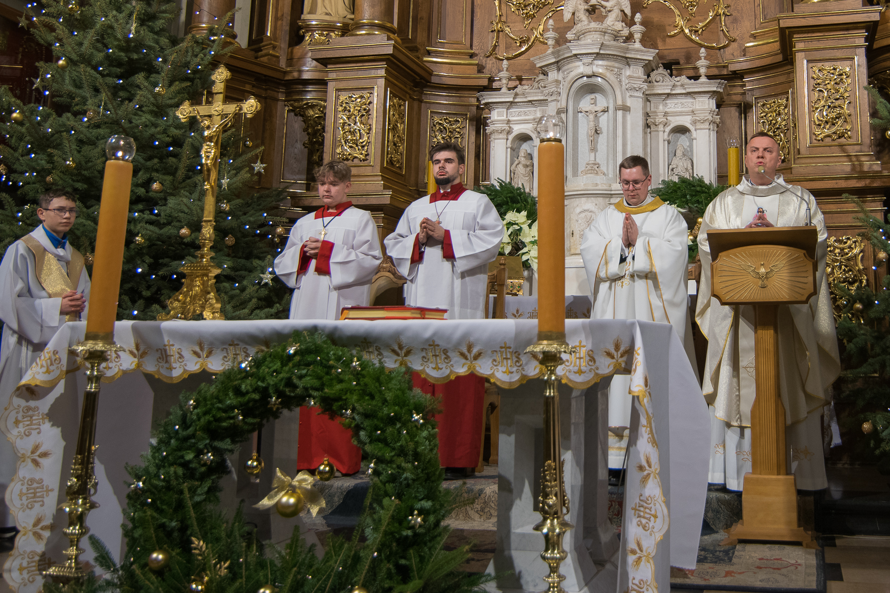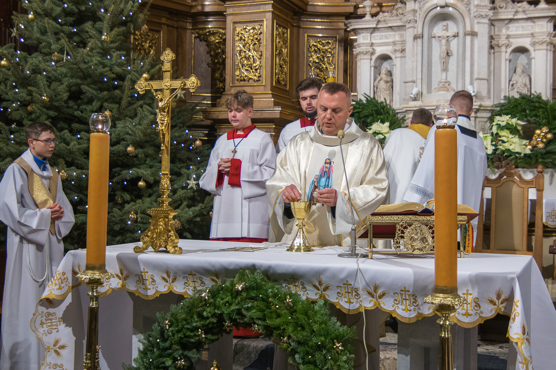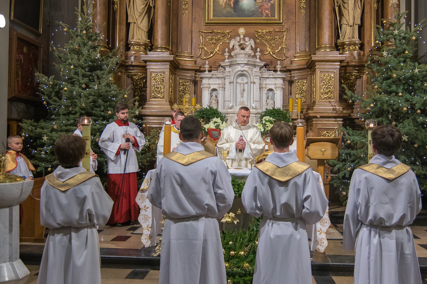 Liturgię Mszy Świętej poprzedziło uroczyste wniesienie figury Dzieciątka Jezus do szopki betlejemskiej. Na zakończenie Eucharystii ksiądz Proboszcz złożył wszystkim bożonarodzeniowe życzenia.